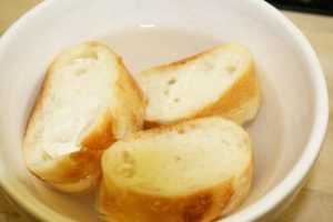 - 3/4 cup white fresh bread crumbs or 2-3 slices of bread soaked in water