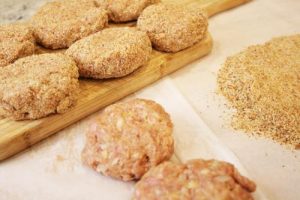 - Form individual patties about 1 1/2" in diameter and roll in the dry bread crumbs until all surfaces are covered