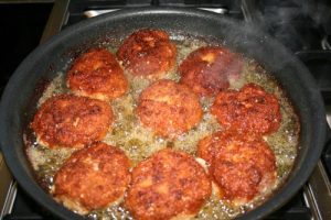 - Test oil by dropping a small crumb of patty into oil, if the oil sizzles, add patties one at a time. Fry for 3-4 minutes, check the patties from time to time and if they are golden brown, turn them over.