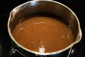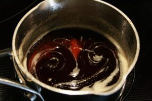 - Melt 1/4 cup unsalted butter in a medium sauce pan over medium high heat and continue swirling and stirring until the butter turns a rich golden brown. The butter will foam through out, about 5 minutes.