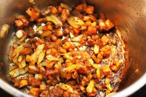 - Remove from heat and add 1 tbsp sweet Hungarian paprika, 1 tbsp ground cumin and 1 tsp ground cinnamon and stir to combine.