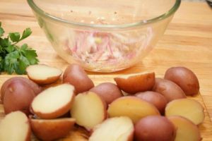 Tip : If you are planning to grill something to go with the potatoes, you could pop the potatoes on the hot grill to get some nice grill marks instead of browning them in a skillet.