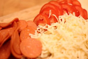- Add sliced pepperoni and bake in a pre-heated oven until the pepperoni is nicely browned and bubbly.