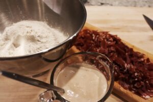 It all started with a pound of thick-cut prosciutto, I wanted something delicate but instead came home with hearty slices that looked more like a challenge than a charcuterie treat. So… what now? Similar to its French cousin Gateau Salé, the Italian version, Prosciutto Bread, came to the rescue. This savory loaf has endless variations. Whether made with salami, prosciutto, or even lard, it’s all about turning odds and ends into something delicious. What started as a deli mishap became a warm, satisfying loaf worth every minute.