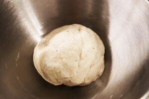 - Using the dough hook in a stand mixer, blend on medium speed for about 10 minutes or until the dough forms a ball.