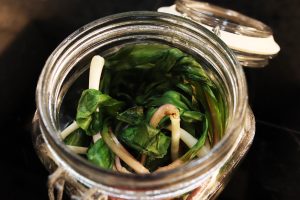 - Remove from heat and add 1/2 cup olive oil, stir to combine and the pour mixture over the ramps in the jar. Press the ramps down so that they are all covered in the liquid.