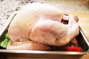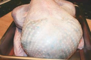 - Place the turkey in a roasting pan and cover with cling wrap and place the turkey in your fridge overnight.
