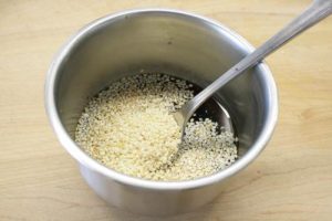 - Mix sesame oil, sesame seeds, soy sauce and ginger.