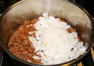 - Add 1 cup chopped onions and cook until the onions are soft, about 5 minutes
