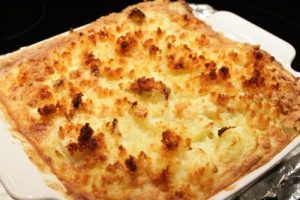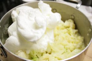 - Gently fold whipped egg whites into vegetable mixture, season again with kosher salt and freshly ground black pepper and turn the vegetables into your casserole dish. Sprinkle the butter/ panko mixture evenly over the top of the vegetables.