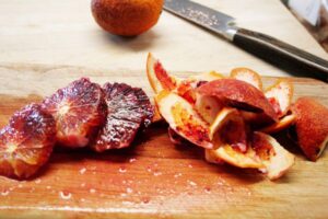 - Peel and slice 1 whole blood orange and set aside until ready to plate.