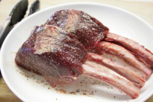 - Season rack with kosher salt and ground black pepper on all sides for at least one hour before cooking and leave at room temperature.