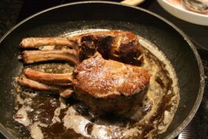 - Add the remaining 2 tablespoons of butter to the hot pan with the venison, and baste the venison for 5-6 minutes with the hot butter.