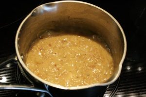- Melt 1 tbsp unsalted butter in a medium sized sauce pan over medium heat.