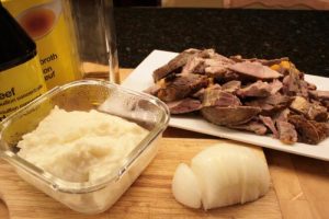 - 1-2 cups left over roast beef or lamb ground in a food processor