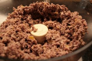 - Cube 1-2 cups left over roast beef or lamb and pulse in a food processor until finely ground.