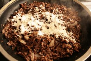 - Sprinkle 1-2 tbsp all-purpose flour over mixture and stir to combine, cook for a further 2-3 minutes