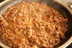 - Add 3/4 cup beef broth , bring to boil the reduce heat to medium and simmer for about 15 minutes or until the mixture becomes thick.