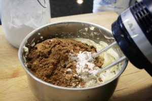 - Add 3 cups powdered sugar, 1/2 cup unsweetened cocoa powder, 3 tbsp heavy (whipping) cream1/4 tsp kosher salt and 2 tsp vanilla extract.