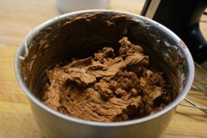 This recipe is for a basic Chocolate Butter Cream Frosting. This recipe will yield enough for 2 nine inch cake layers or one dozen cupcakes.