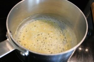 - Melt 1 tbsp unsalted butter in a medium sauce pan over medium heat. Add 1 tbsp all-purpose flour and stir to combine, cook until the roux starts to bubble.