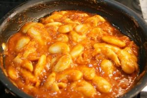 This Spanish Creamy Butter Bean and Tomato Tapas is a wonderful dip with bread, and in fact, works well as a side dish as well. I guess the whole world knows that butter beans are lima beans….I did not, so it took two tries to get this recipe right. I never give up and am happy that I did not as this tapa is terrific! Just make sure that you get canned large lima beans, rather than small green lima beans.
