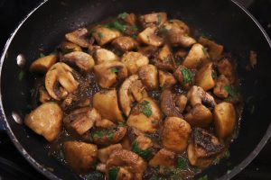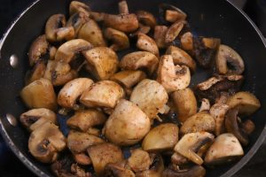 - Remove pan from heat, increase heat to medium high. Add 2 tsp smoked paprika, stir and then add the 10 large button mushrooms cut into quarters. Return skillet to heat and cook until the mushrooms start to brown, about 10 minutes.