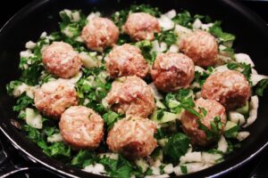 - Add any leftover mini meatballs to the kohlrabi mixture.