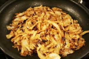 - Cook the pasta until al dente, strain and combine with caramelized cabbage.
