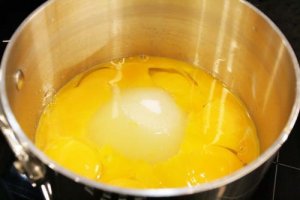 - Whisk together egg yolks, sugar and lemon juice in a heavy bottomed saucepan and cook over medium low heat, whisking constantly (you can use a hand mixer for this portion) until the mixture just comes to a simmer (do not let it boil).