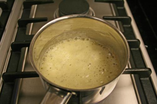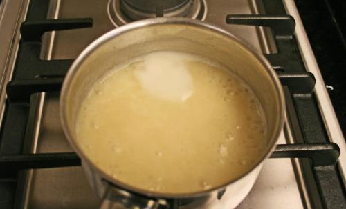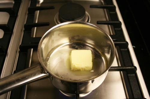 - Heat 1 tbsp unsalted butter over medium high heat in a small sauce pan until the butter is bubbly.