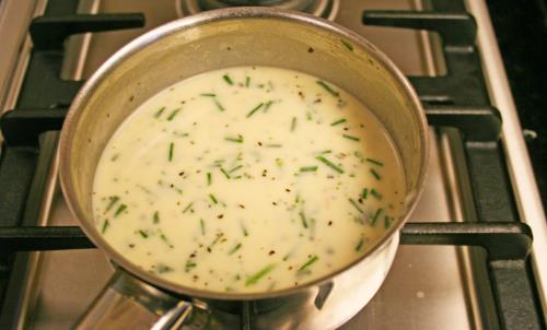 - Add white pepper to taste, 1-2 tbsp fresh chopped tarragon, 1 tbsp chopped chives, 1-2 tbsp dry sherry, and 1/2 cup whipping cream and stir until well combined. Add 1-2 drops fresh lemon juice then reduce heat and simmer until slightly reduced, 8-10 minutes.