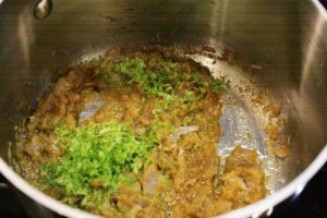 - Add grated garlic, curry paste, fish sauce and lime zest and stir to combine. Cook until the mixture becomes quite fragrant, about 4 minutes.
