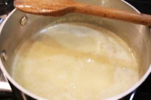 - Add coconut cream, stir to combine with a whisk, bring to a simmer and then reduce heat and cook until reduced by half, about 20-25 minutes. Remove from heat and allow the sauce to come to room temperature.