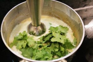 - Add agave or honey, lime juice, 1/4 cup cilantro leaves and blend until very smooth.