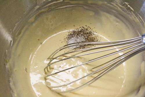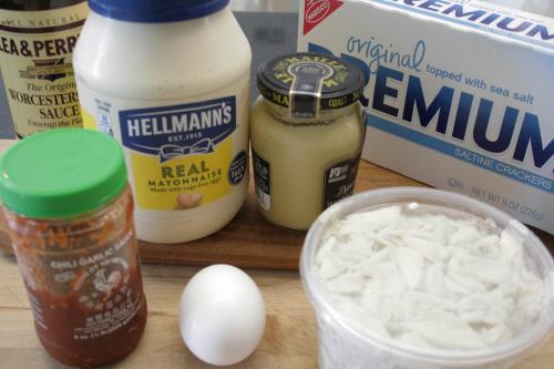 - Combine mayonnaise, mustard, egg, Worcestershire sauce and chili sauce until blended.