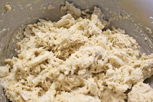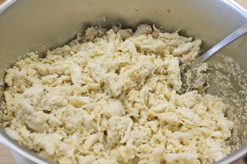 - Pour the mayonnaise/mustard mixture over the crab/cracker mixture and blend to combine.