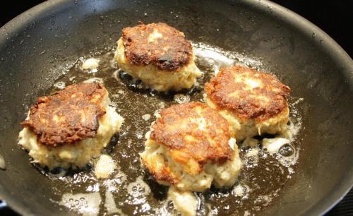 - Heat 2 tablespoons of canola oil in a medium skillet over high heat until the surface of the oil begins to ripple, add crab cakes and fry for 1-2 minutes over high heat until nicely browned, reduce heat to medium high and fry for another 1-2 minutes.