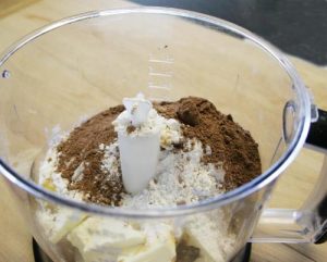 - Combine all ingredients, except chocolate chips and jam, in a food processor.