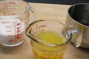 - Measure an equal amount of sugar to the remaining amount of liquid, combine with liquid and return both to a small sauce pan.