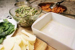 Tip : You have to be a little organized so that you tackle the cooking of the pasta at one time one after the other, and the microwaving of the vegtables, again one after the other. Then just line up all of the ingredients and create the delicious layers with everything at hand.