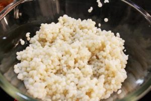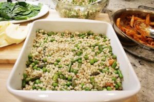 - Cook couscous according to package directions, when cooked, drain, rinse 2 cups cooked Israeli couscous under cold water, drain again and set aside.