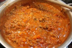 - Combine 2 cups meat sauce with 1/2 tsp crushed chili flakes, 1/2 tsp turmeric and 1/2 cup grated Pecorino-Romano or Parmesan cheese.