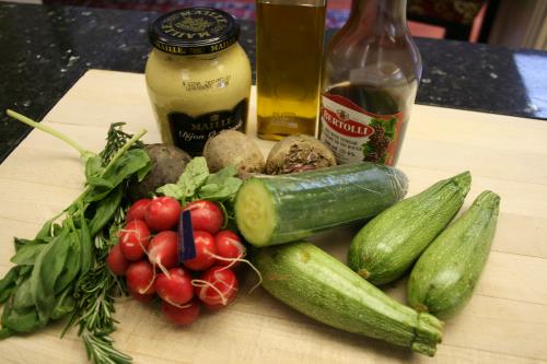 - Make dressing by combining 1/4 cup red wine vinegar, 3 tbsp Dijon mustard, 1/2 cup olive oil, 2 tbsp fresh basil leaves and 1 tsp fresh rosemary finely chopped Shake well to combine.