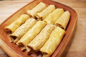Tip : Use damp paper towels when heating the corn tortillas, Also, only heat 2 at a time and heat for close to a minute. The tortillas are a lot easier to roll and tuck when they are really pliable.