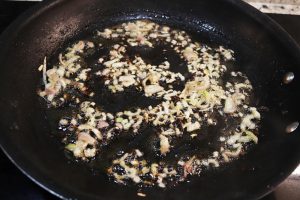 - Drain all but about a tablespoon of fat from the pan and add 1 medium finely diced shallot to the remaining fat in the skillet and sauté until the shallots get golden.