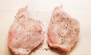 - Lay rabbit pieces on a sheet of parchment paper and season each piece generously with kosher salt and freshly ground black pepper.